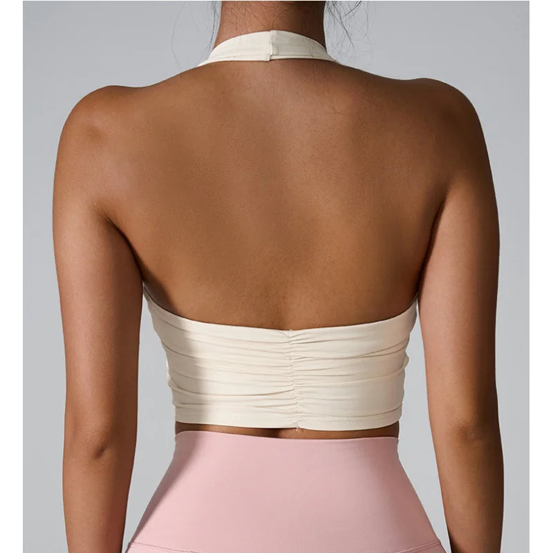 Seamless Halterneck Sports Bra – Breathable Push-Up Fitness Top for Women